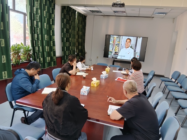 会上全体党员深入学习了习近平总书记在全国民族团结进步表彰大会上的讲话精神,观看全国优秀电教片展播——《记新疆维吾尔自治区伊犁州特克斯县特克斯镇古勒巴格村医生赵广书》,以视频联线方式与自治区“优秀共产党员”、伊犁州“民族团结进步模范个人”赵广书医生进行现场对话。